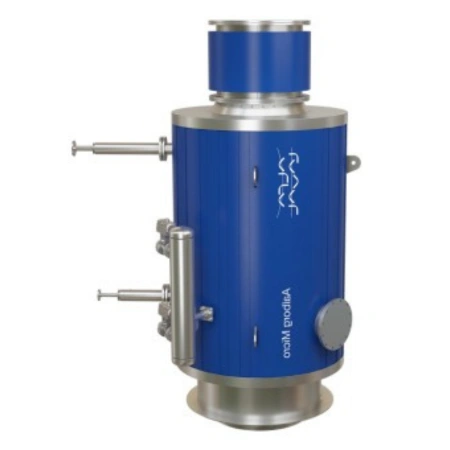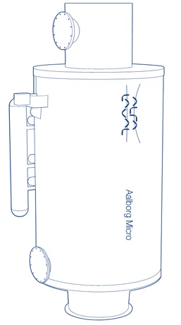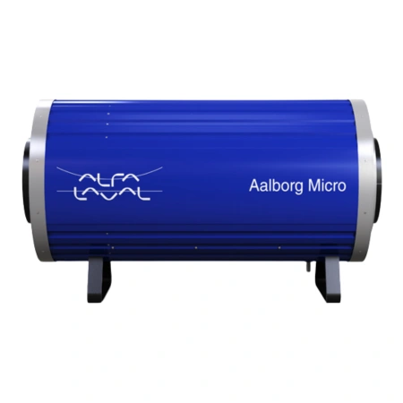 A diferencia de otras unidades, el Aalborg Micro no cuenta con un espacio de vapor integrado. En su lugar, se conecta a una o más calderas de gasoil que proporcionan el volumen necesario de vapor o agua. La circulación forzada juega un papel esencial, ya que suministra agua a temperatura de saturación desde estas calderas directamente al intercambiador.